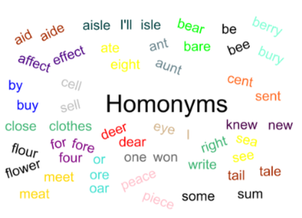 Homonyms - group of words containing Homophones (sound alike) and Homophones (spelled alike :)